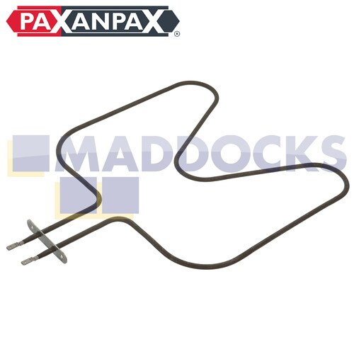 Number of turns | Wattage (W) | Length of element (mm) | Width of element (mm) | Plate Length (mm) | Plate width (mm) | Distance between terminals (mm) | Distance between hole centres (mm) |
